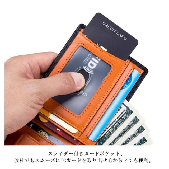 | 色違いのインナーがおしゃれなメンズ極薄型財布。 胸ポケットやヒップポケットにスッポリ入れる小さなサイズ感、いつでもスマートに持ち運べます。 小さいながら、充実した収納力!紙幣入れ1つ、カードポケット5つ、小銭入れ1つ! パット開けると一目瞭然!ボックス型の小銭入れなので、焦らずスムーズな会計ができる。 スライダー付きカードポケット、改札でもスムーズにICカードを取り出せるからとても便利。 話題のスキミング防止機能搭載!個人情報をしっかりガードする財布。 耐久性と高級感溢れるカーボン加工、丈夫で長くお使いいただける逸品。 誕生日プレゼントや父の日の贈り物などにもオススメです。 | |