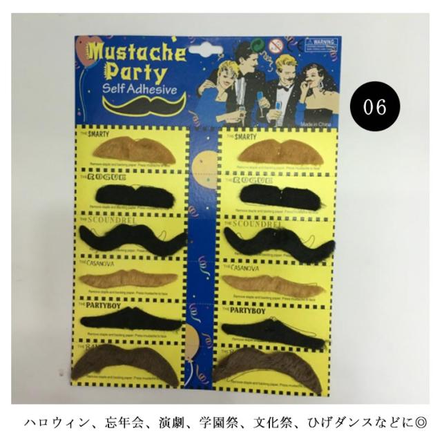 送料無料 全19タイプ ひげ 口ひげ ハロウィン コスプレ 忘年会 イベント ちょび髭 クリスマス パーティーグッズ 付け髭 あご髭 ひげダンス 仮装 変装 正月 面白い