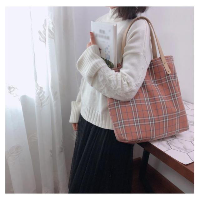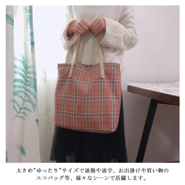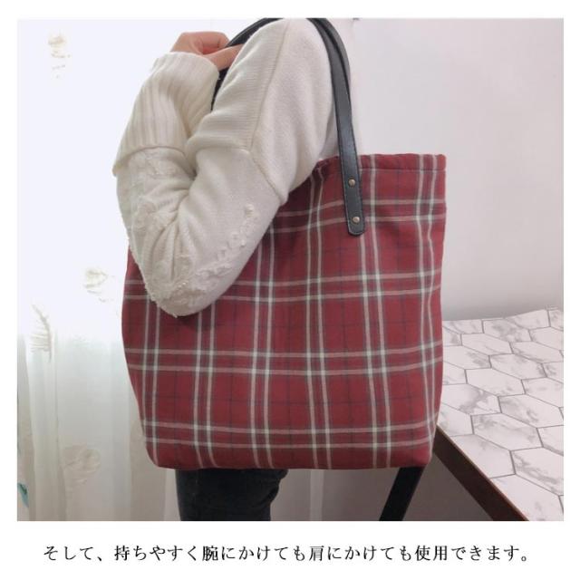 トートバッグ バッグ キャンバスバッグ 肩掛けバッグ エコバッグ マザーズバッグ ショルダーバッグ かばん 鞄 ファッション カジュアル チェック柄 肩掛け 斜めがけ 手持ち 大きめ 大人 可愛い 学生 厚手 大容量 通学 通勤 出張 お買い物 和風