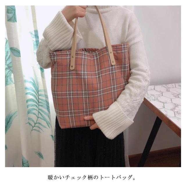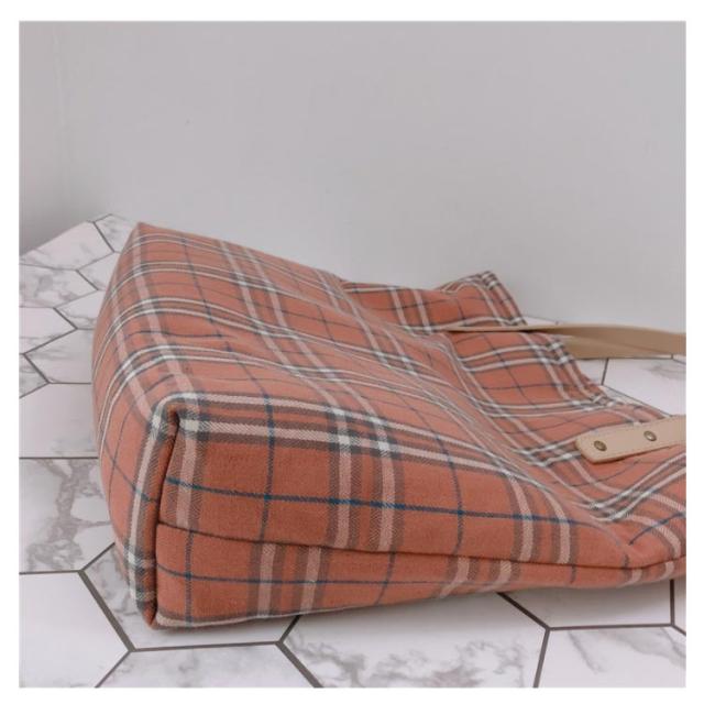 | 暖かいチェック柄のトートバッグ。 厚く処理した綿素材を採用、バッグは全体的に厚くしっかりしている印象。四季に利用できるスタイル。 こだわりのディテールで高級感を演出。 大きめゆったりサイズで通勤や通学、お出掛けや買い物のエコバッグ等、様々なシーンで活躍します。 | |