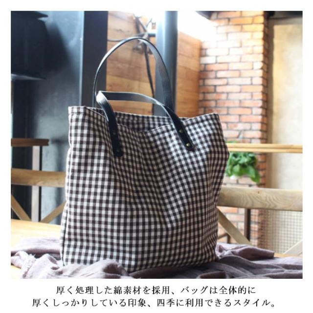 | シンプルで上品なチェック柄のトートバッグ。 厚く処理した綿素材を採用、バッグは全体的に厚くしっかりしている印象。四季に利用できるスタイル。 こだわりのディテールで高級感を演出。 大きめゆったりサイズで通勤や通学、お出掛けや買い物のエコバッグ等、様々なシーンで活躍します。 | |