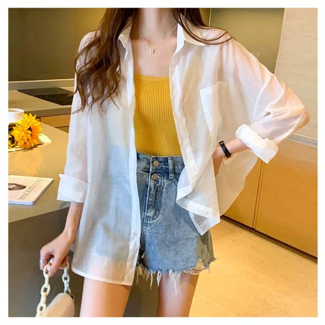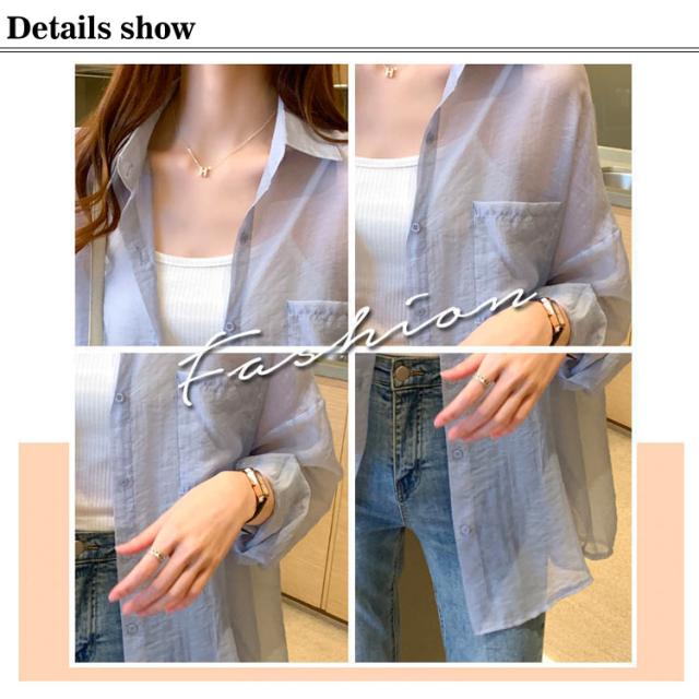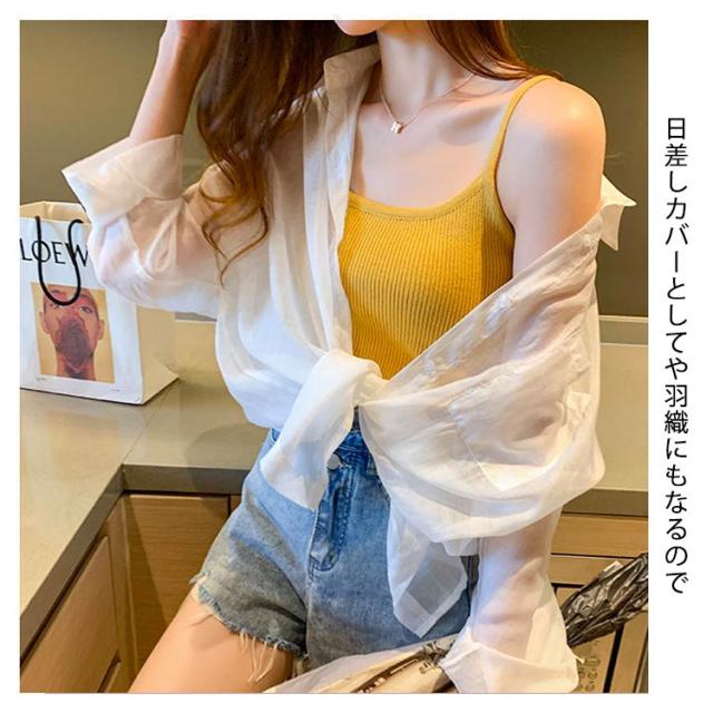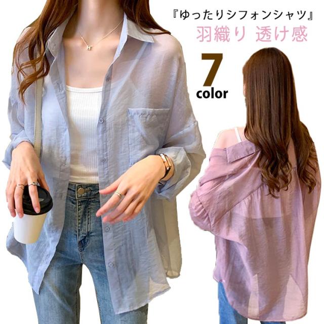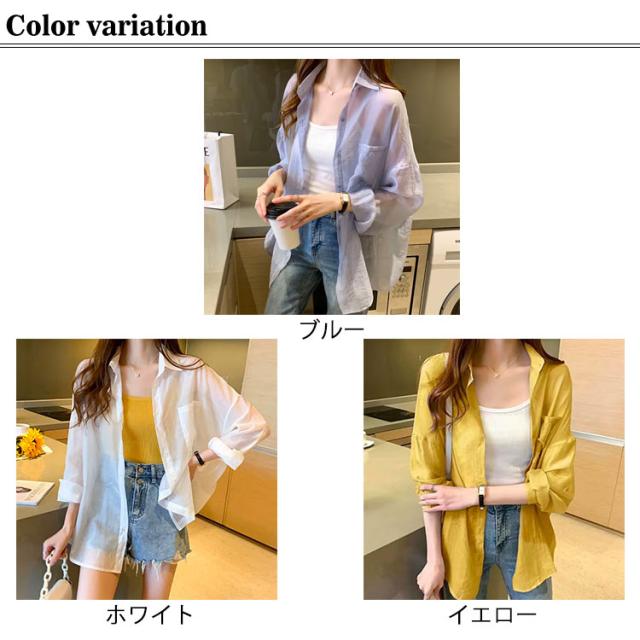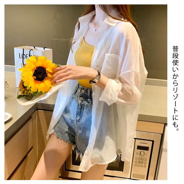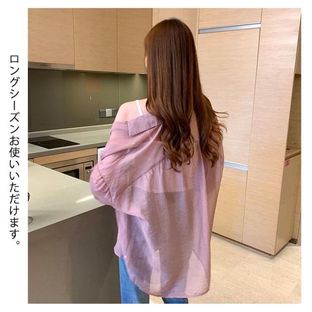 カーディガン レディース ブラウス シースルー 羽織り 透け感 シャツ ゆったり パフスリーブ ドロップショルダー UV対策 紫外線対策 送料無料