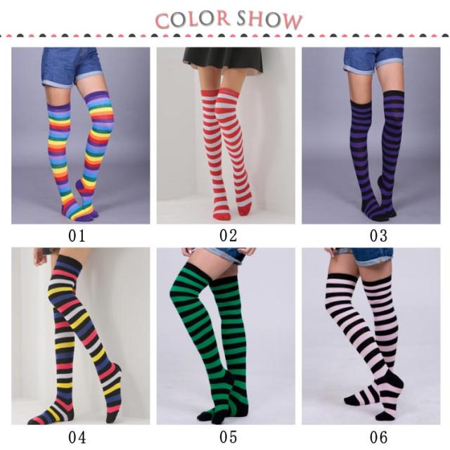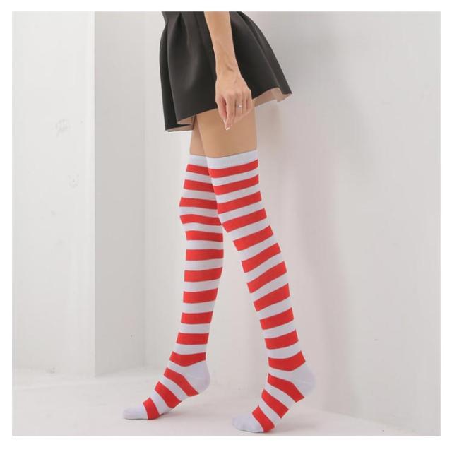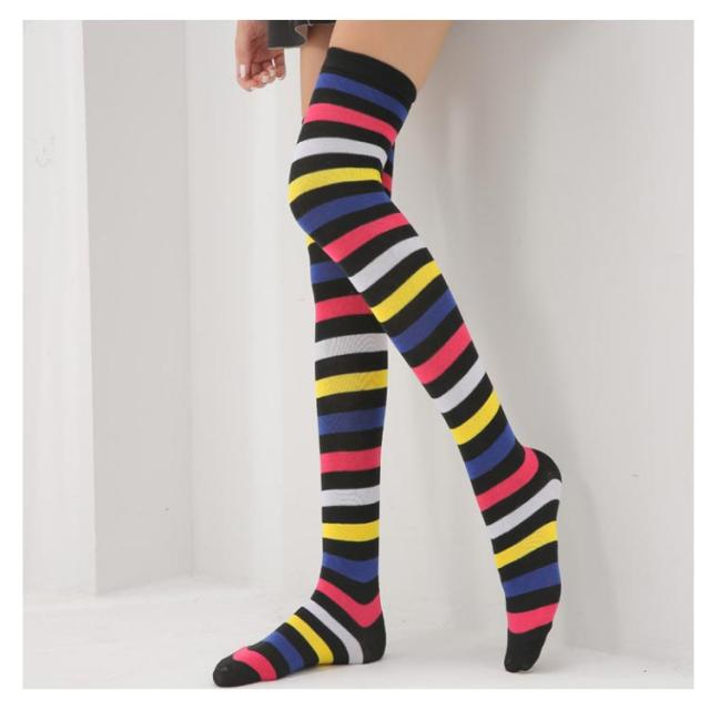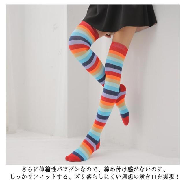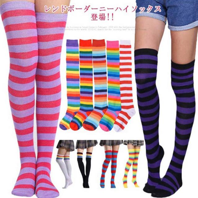 靴下 ボーダーニーハイソック レディース ニーハイ ソックス ハロウィン コスプレ クリスマス ゴズロリ ロリータ オーバーニーソックス 太ボーダー 細ボーダー 美脚 虹柄