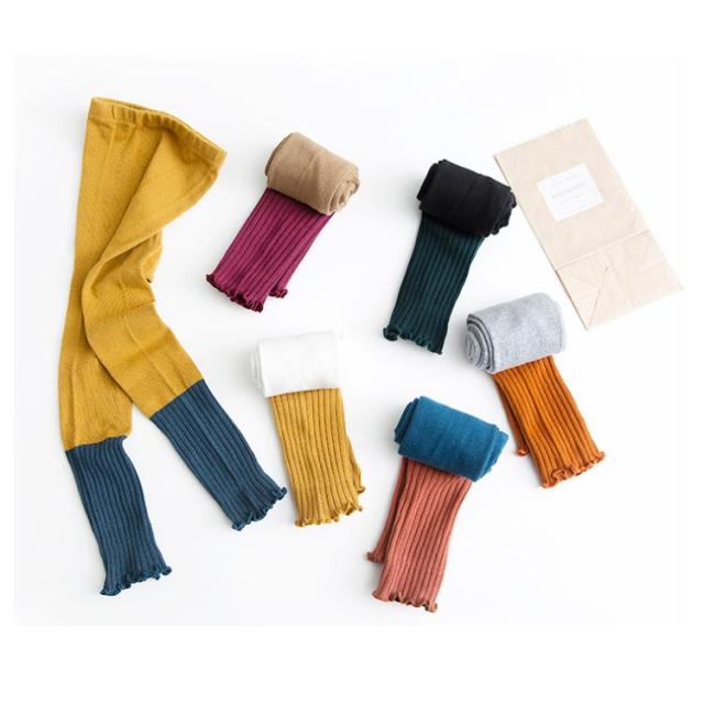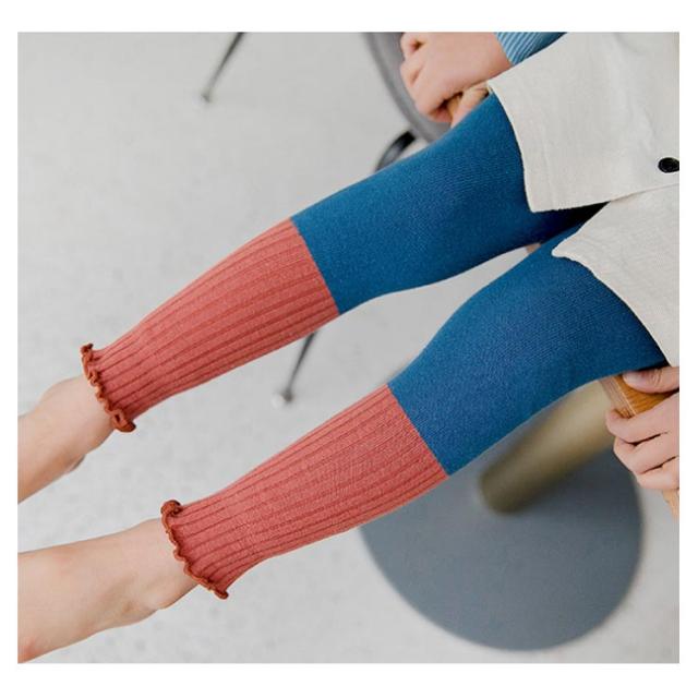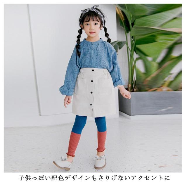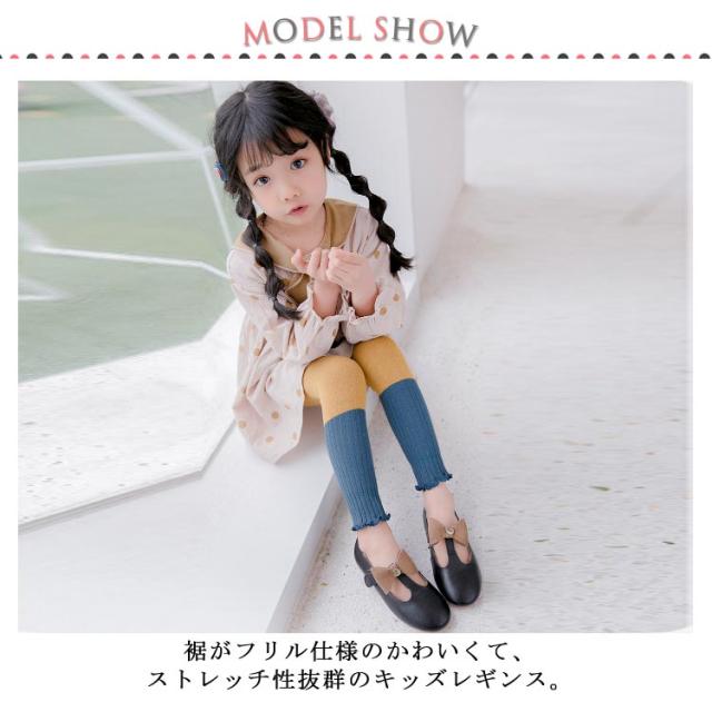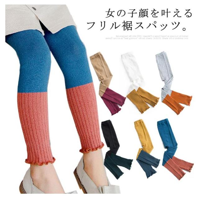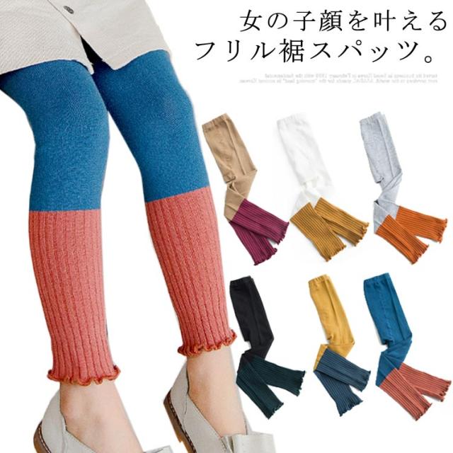 裾フリルレギンス 子供服 リブレギンス 配色 スパッツ キッズ レギンス おしゃれ ベビー キッズ ジュニア 子供 こども 子ども リブ 秋 冬 かわいい