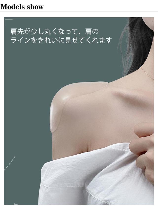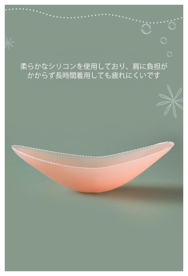 | 肩ラインをきれいに見せるシリコン肩パッド! 柔らかなシリコンを使用しており、肩に負担がかからず長時間着用しても疲れにくいです。 肩先が少し丸くなって、肩のラインをきれいに見せてくれます。 | |