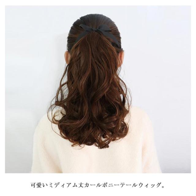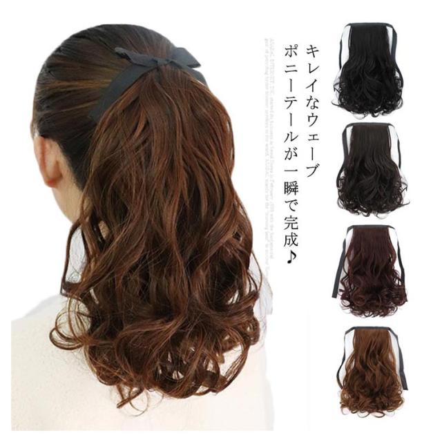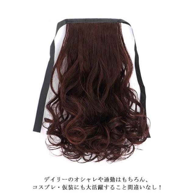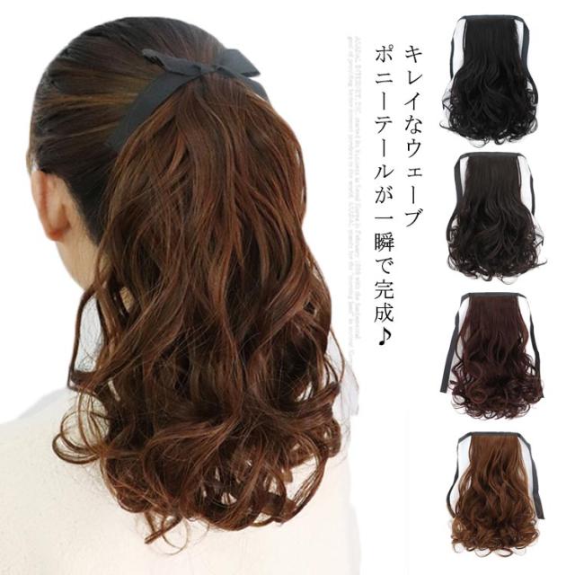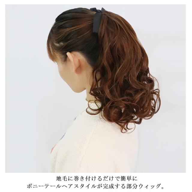送料無料 ポニーテール カール ウィッグ ミディアム 襟足 エクステ ポイントウィッグ つけ毛 部分ウィッグ リボンタイプ ウェーブ 可愛い コスプレ イメチェン