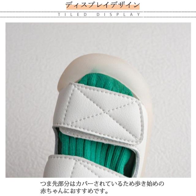 | 歩きやすくて足が痛くなりにくいベビーサンダル マジックテープタイプのダブルベルトなので、素早く履かせたり脱がせたりできます。 クッションインソールを使用し、疲れにくく足に優しいです。 グリップに優れたラバー素材のアウトソールを採用し、転倒しにくいよう配慮しているのもポイント。 つま先部分はカバーされているため歩き始めの赤ちゃんにおすすめです。 | |