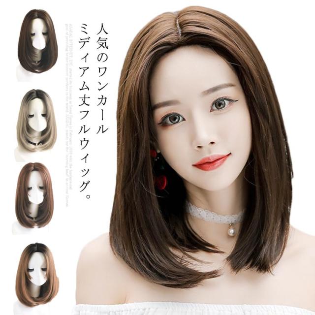 送料無料 ワンカール ウィッグ フルウィッグ セミロング かつら 自然 ボブスタイル ミディアム ボブ グランデーション つけ毛 ハロウィン コスプレ ハロウィン 仮装 普段使い 耐熱
