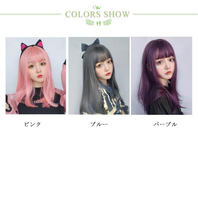 送料無料 コスプレ ウィッグ ロリータ カラー つけ毛 かつら ロング カール 姫カット フルウィッグ 耐熱ウィッグ アニメ 漫画 ハロウィン コスプレ 仮装 イベント クリスマス 文化祭