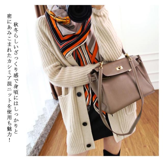カシミア混 ニットカーディガン レディース ロングニットカーディガン ウール ロングカーディガン コーディガン ロング丈 ざっくり ポケット付き 暖かい 秋冬