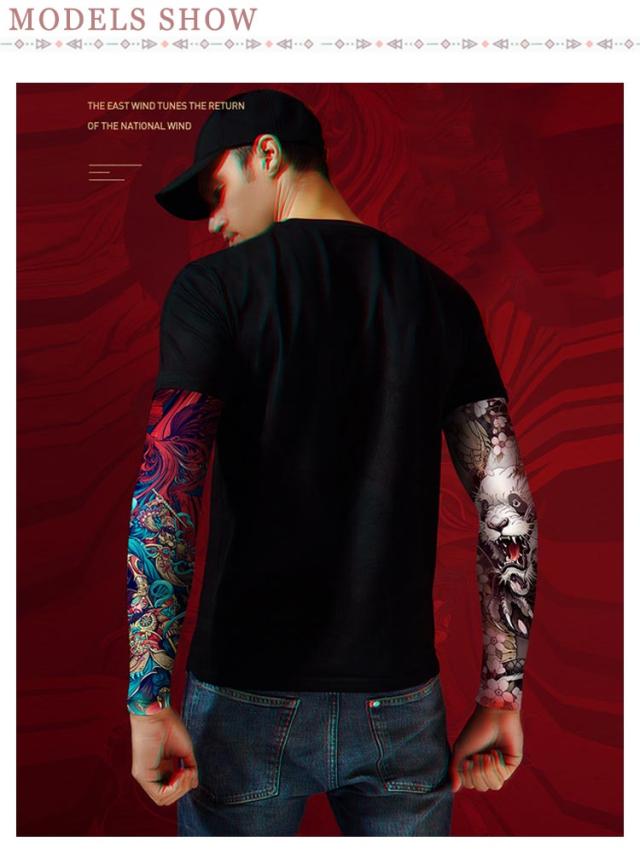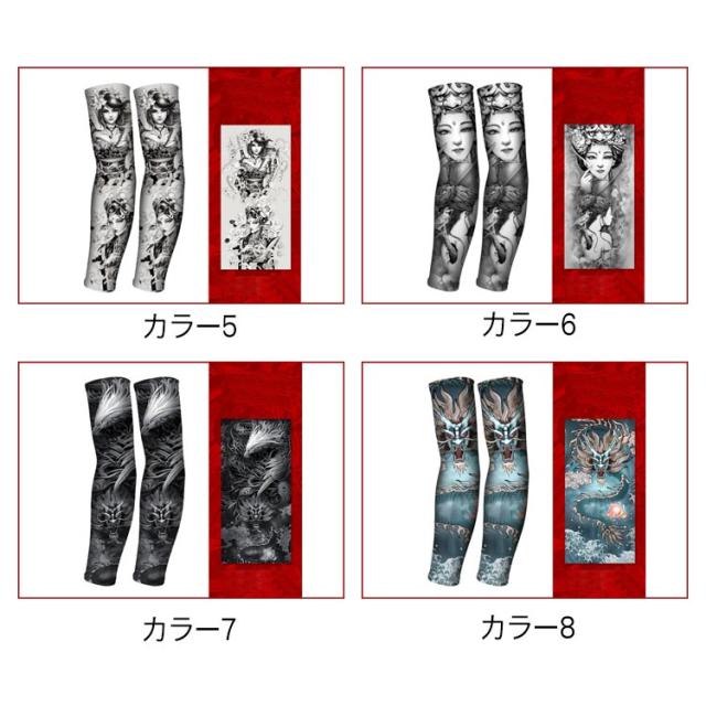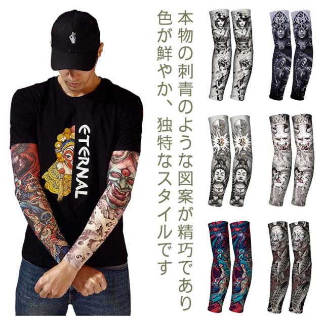 タトゥー アームカバー 夏 接触冷感 アウトドア タトゥースリーブ 刺青 デザイン UVカット 涼しい tattoo 煽り 腕 和柄 虎 龍 薔薇 竜 極道 スカル トライバル リアル 男性 女性 オシャレ ファッションクール 紫外線防止 送料無料