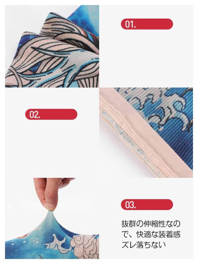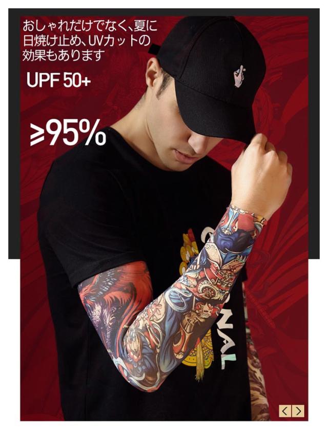 | 本物の刺青のような図案が精巧であり、色が鮮やか、独特なスタイルです。 接触冷感素材を使用して、冷んやり感が持続し快適です。 おしゃれだけでなく、夏に日焼け止め、UVカットの効果もあります。 抜群の伸縮性なので、快適な装着感、ズレ落ちない。 イベント、コスチューム、あおり運転、バンド、祭り、ハロウィン、ビーチなどでも大活躍! | |