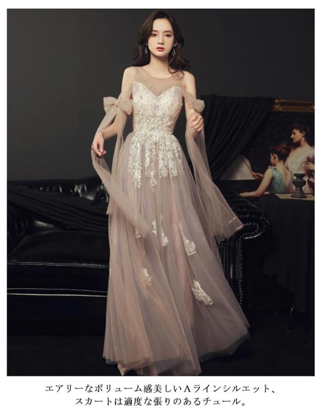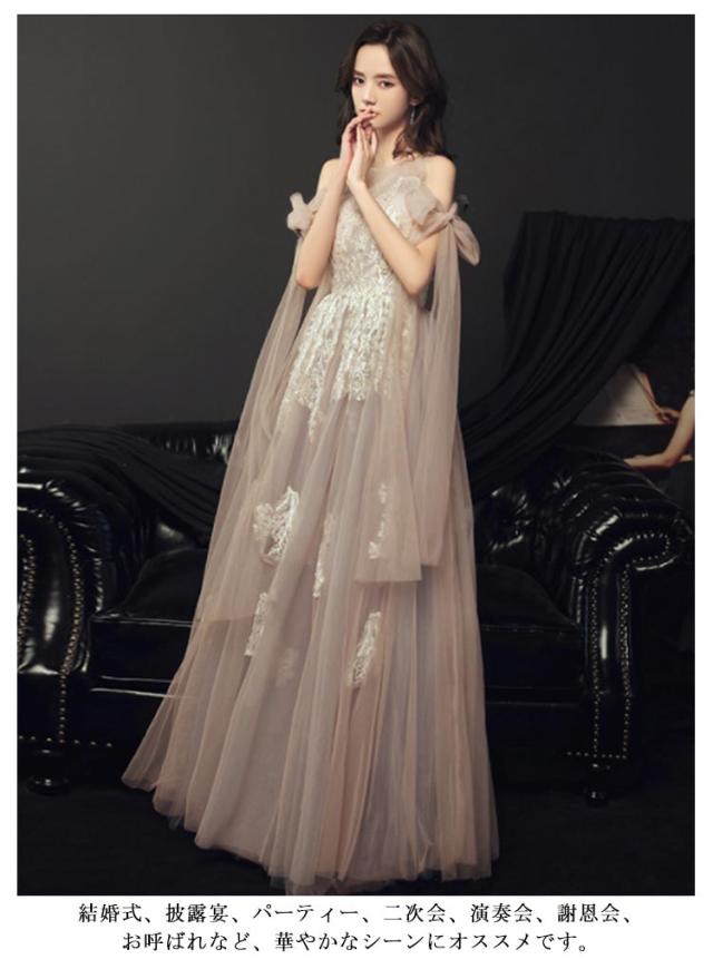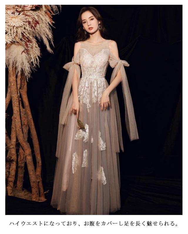 花嫁ドレス イブニングドレス チュール ロングドレス フォーマル ウェディングドレス 二次会 披露宴 リボン 結婚式 謝恩会 演奏会 ワンピース 上品 お呼ばれ 卒業式 発表会 20代 30代 大人 シャンパン シャンパン 大きいサイズ 春 夏 秋 パーティードレス