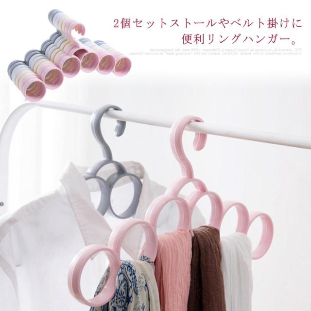 送料無料 2個セット リングハンガー スカーフホルダー ストール スカーフ マフラー ハンガー 物干しハンガー 6リング ベルト用 ネクタイ用 吊り下げ収納 大容量 隙間収納 便利グッズ 収納 整理 滑らない 収納用品 家庭用 多機能