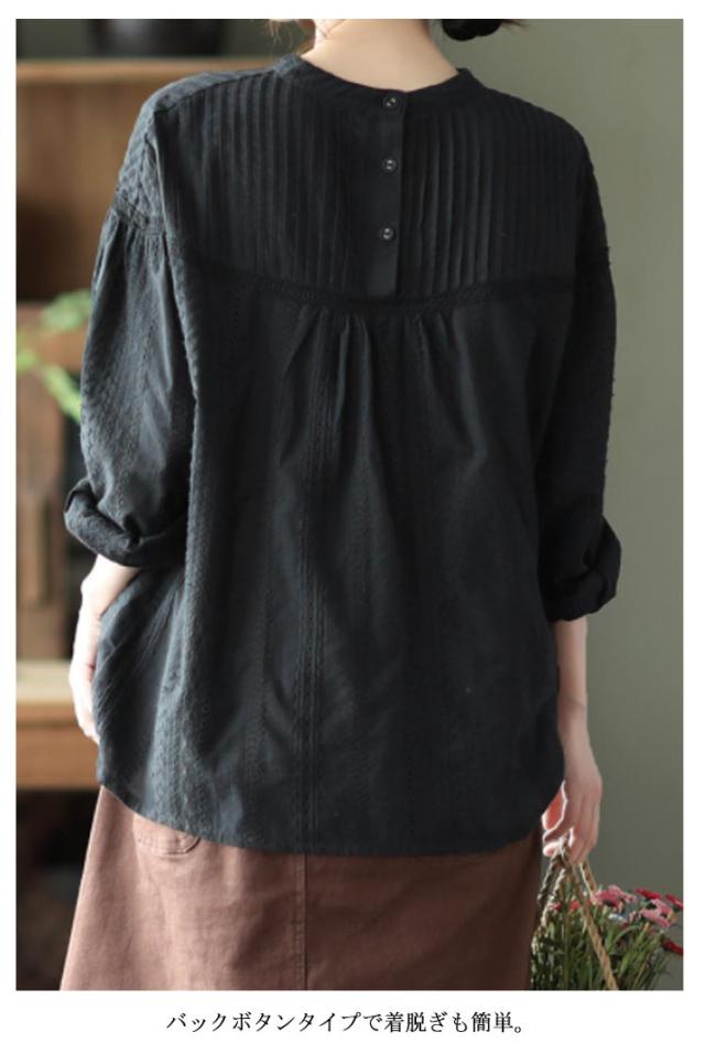 刺繍ブラウス 綿100% 長袖 レディース シャツ パフスリーブ 送料無料 バックボタン 春 秋 刺繍 レースブラウス おしゃれ トップス シャーリング バンディング きれいめ シンプル ふんわり 柔らか チュニック 通勤 オフィス 入学式 入園式 卒業式 卒園式 上品
