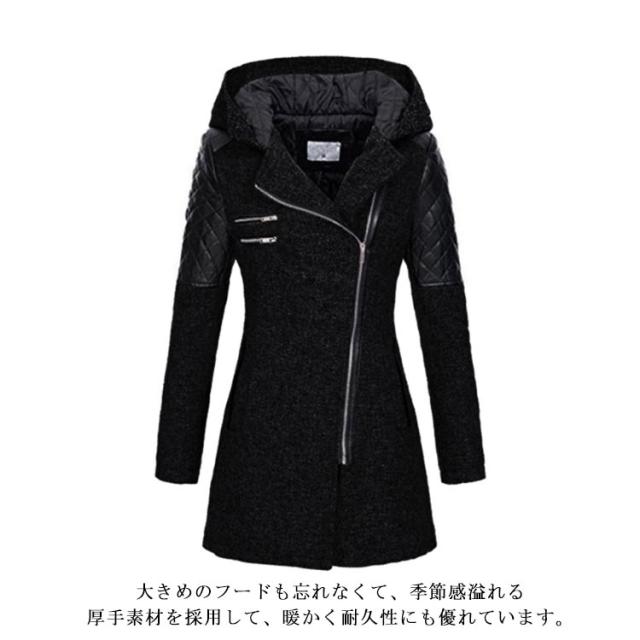 S-5XLサイズ!コート メンズ 斜めファスナー アウター ロングコート フード付き メルトンコート ミドル丈 厚手 防寒 カジュアル 大きサイズ メンズファッション 秋冬 冬