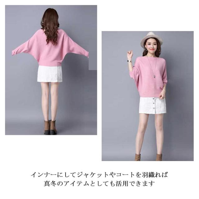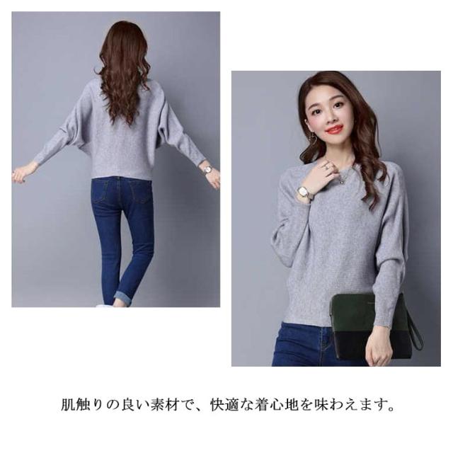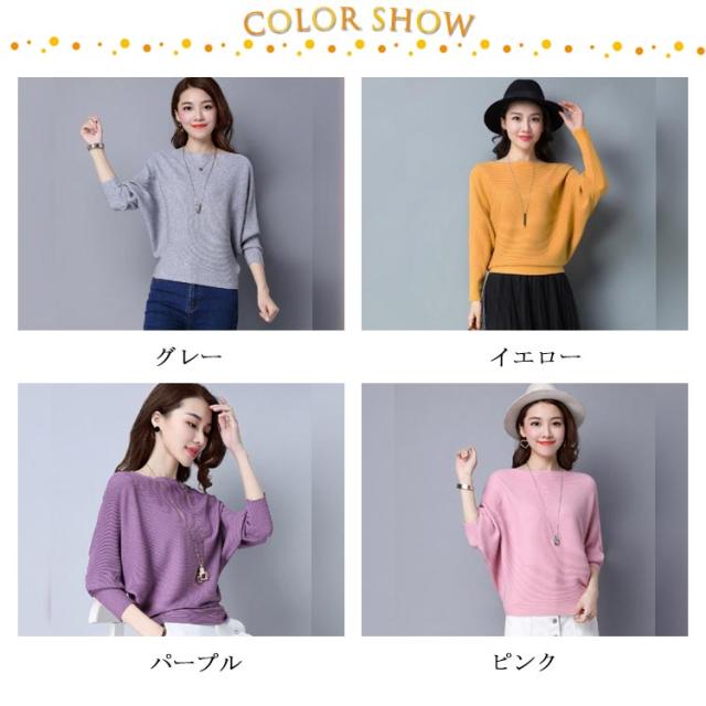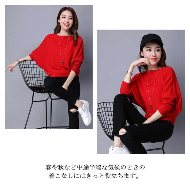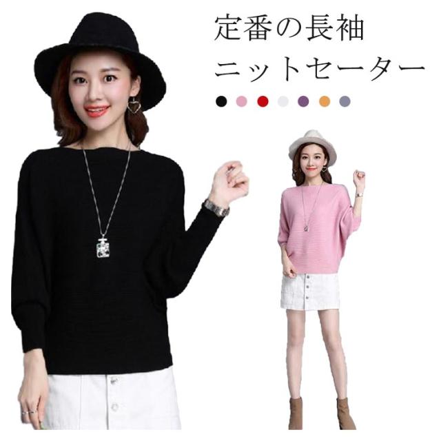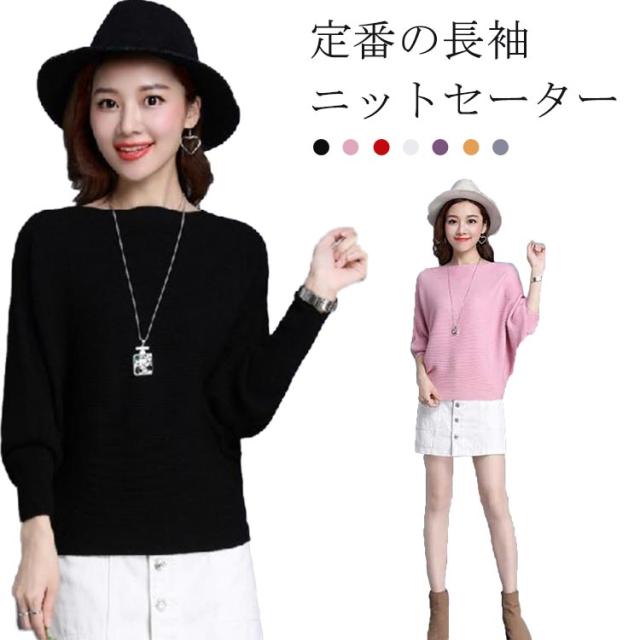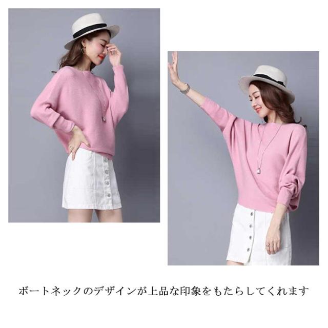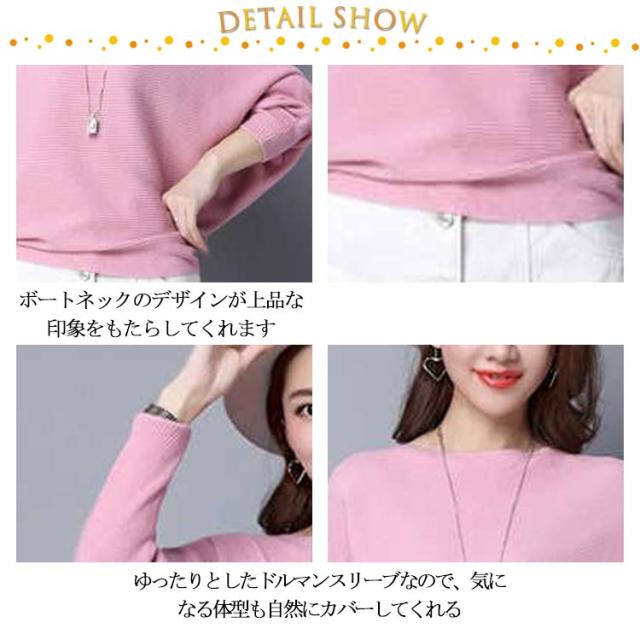 ニット トップス ドルマンスリーブ 長袖 レディース ボートネック セーター リブニット 無地 ゆったり ストレッチ 春秋冬 服 ゆったり 体型カバー 大きいサイズ おしゃれ カジュアル