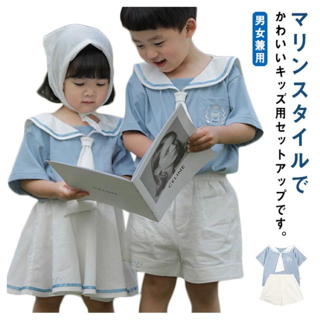2点セット セーラー セットアップ Tシャツ&パンツ 上下セット 春夏 春物 夏物 春 夏 男の子 女の子 男女兼用 ガールズ キッズ こども 子供服 韓国 上下セット かわいい お洒落 プチプラ