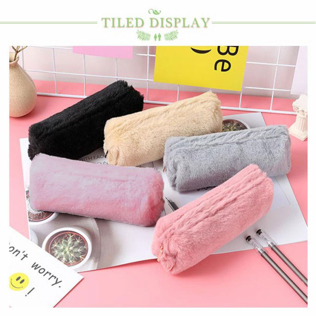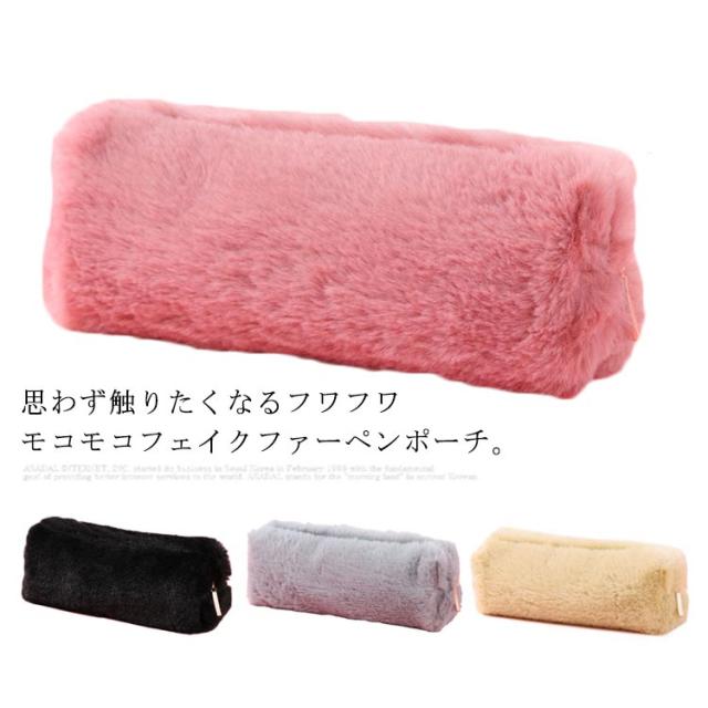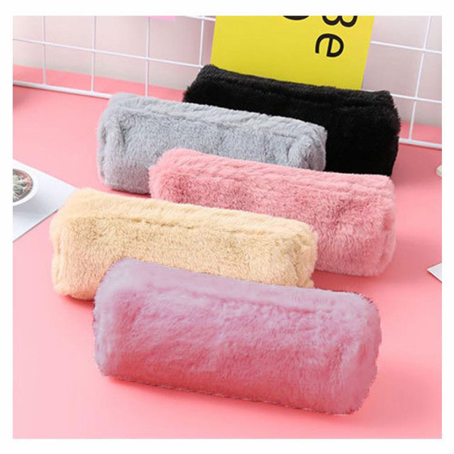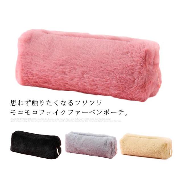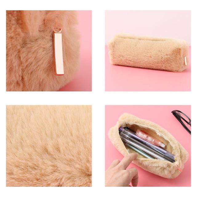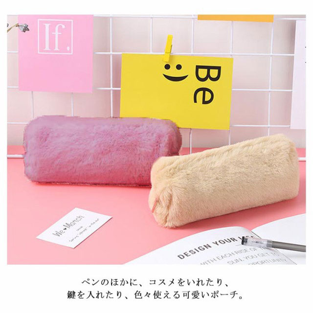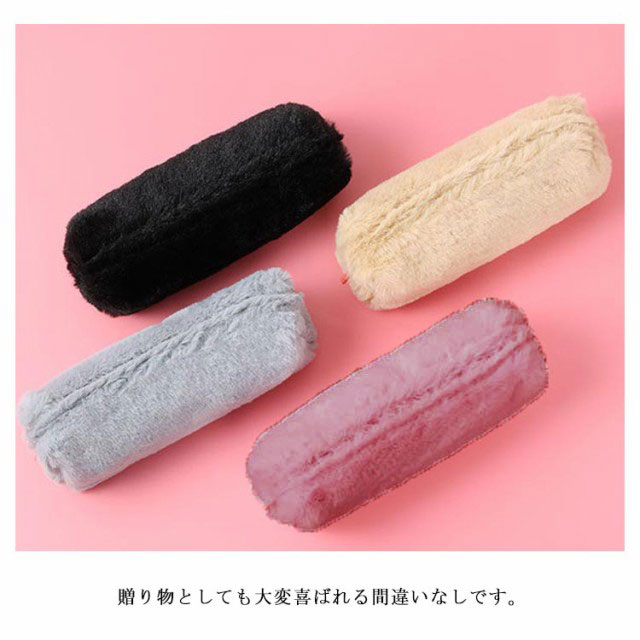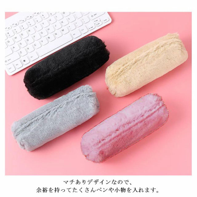 送料無料 ペンポーチ ペンケース ふわふわ もこもこ 筆箱 筆入れ 化粧ポーチ 小物入れ 収納 文房具 大容量 おしゃれ 無地 オフィス 高校生 大学生