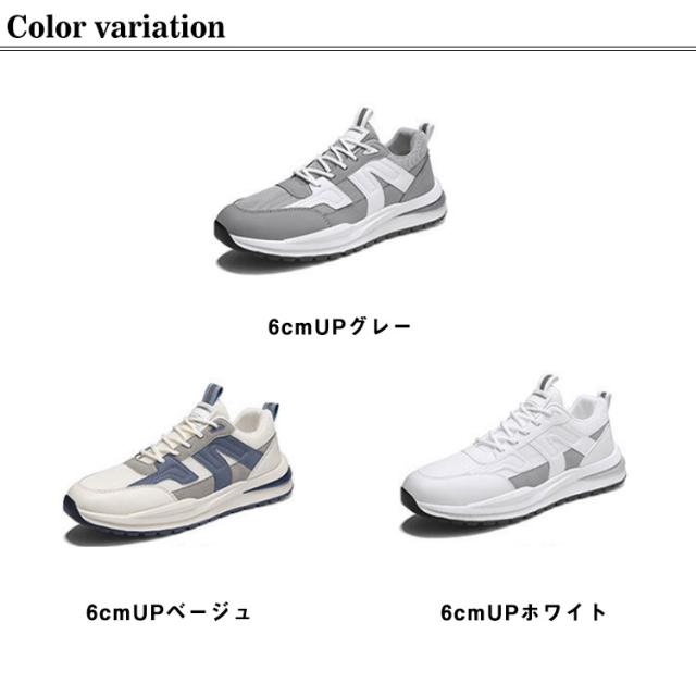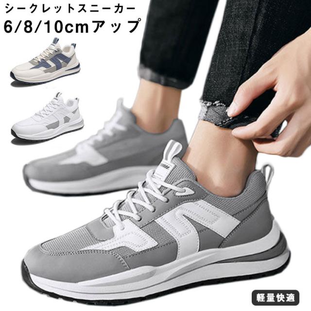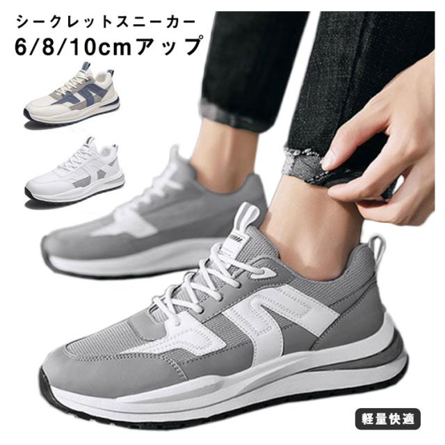 シークレットシューズ メンズ スニーカー 厚底 夏 春秋 身長アップ6cm 8cm 10cm インヒール 軽量快適 スニーカー 運動靴 24.5-27cm ベージュ グレー ホワイト