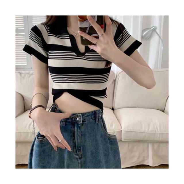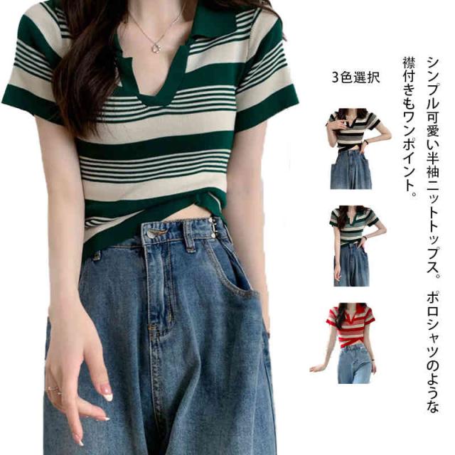 ニット ポロシャツ レディース 半袖 tシャツ 春 夏 トップス サマーニット オープンカラー 襟付き ボタンネック ボタンカラー配色 リブニット 配色 tシャツ 冷感 涼しい カットソー 大人 おしゃれ 韓国ファッション