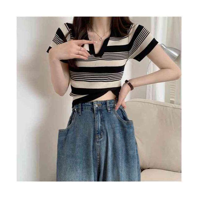 | シンプル可愛い半袖ニットトップス。 ポロシャツのような襟付きもワンポイント。 ハーフオープンデザインで首元はワンボタンで開閉できます。 フィットルーズなシルエットが女性らしさをプラスし、着痩せ効果も◎ 着るだけでくびれて見える広めのリブが着心地もラクラク。 スラックスやフレアスカートにお似合いで夏のリネンボトムとも相性ばっちり◎ | |