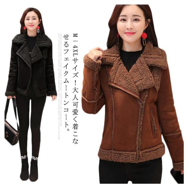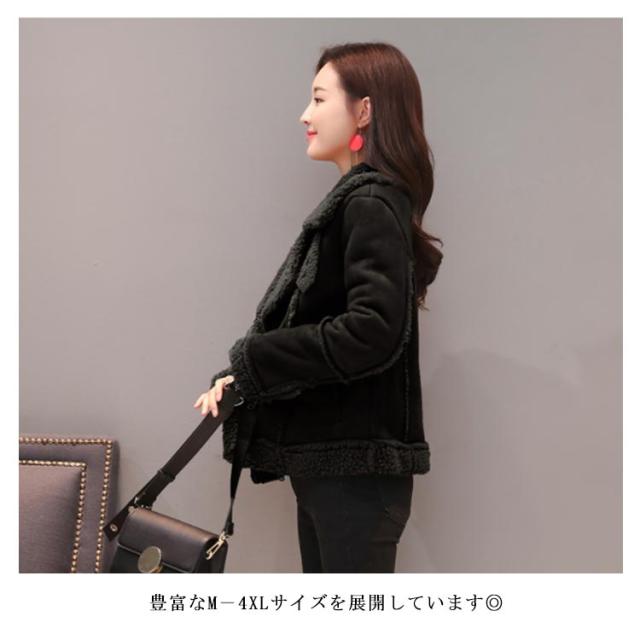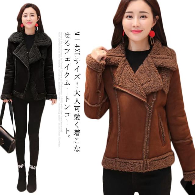 M-4XLサイズ!ムートンコート フェイムムートン コート ライダースジャケット レディース 裏ボアジャケット ムートン風 ジャケット アウター ショートコート ライダース ボア 厚手 秋冬 冬物
