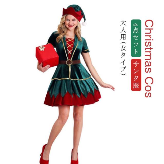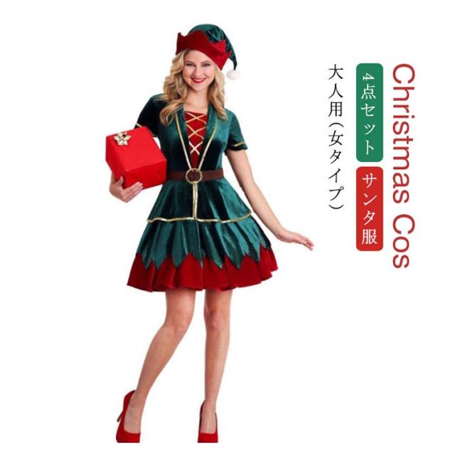 送料無料 クリスマス コスチューム サンタ衣装 大人用 4点セット サンタ サンタコス コスプレ コスチューム クリスマス 衣装 コスプレ 仮装 サンタ コスプレ コス サンタ服 パーティー