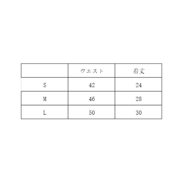 | サイズについての説明 | S ウェスト:42cm 総丈:24cm M ウェスト:46cm 総丈:28cm L ウェスト:50cm 総丈:30cm |