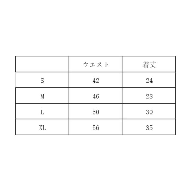 | サイズについての説明 | S ウェスト:42cm 総丈:24cm M ウェスト:46cm 総丈:28cm L ウェスト:50cm 総丈:30cm |
