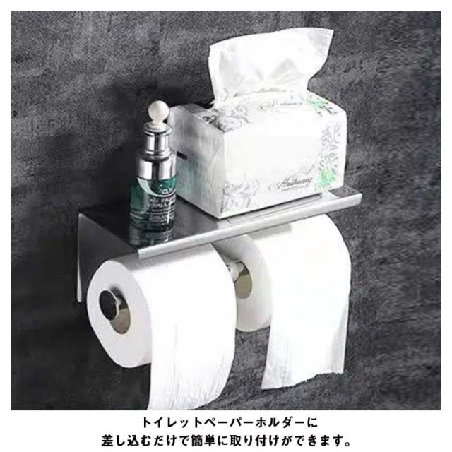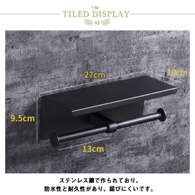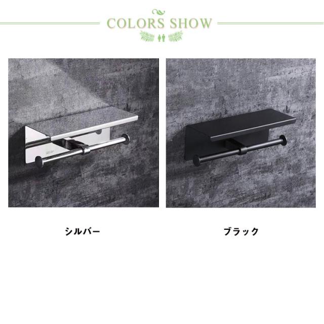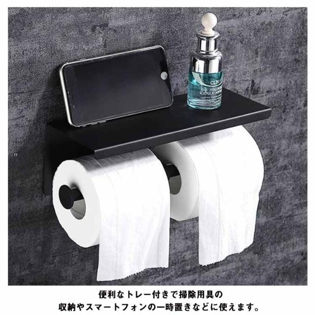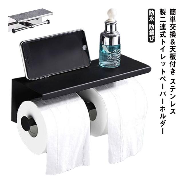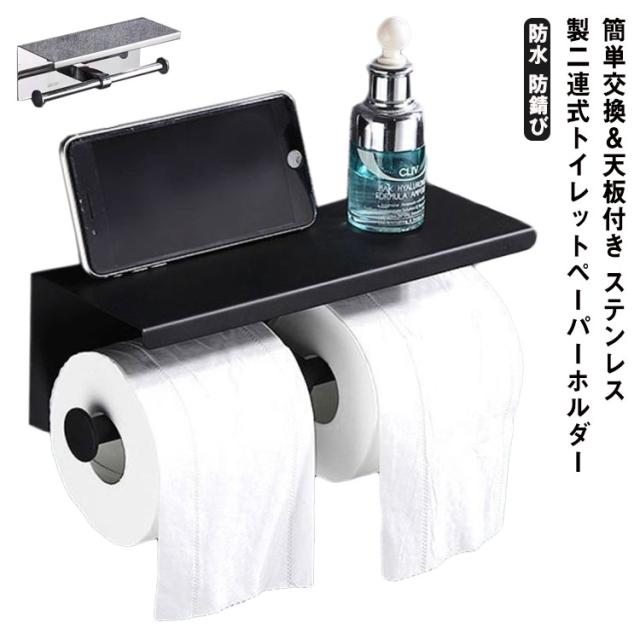 2連 防錆び アンティーク トイレットペーパーホルダー ダブル 棚付き 北欧 防水 ステンレス モダン モノトーン アンティーク ブラック 黒 シルバー お手洗い トイレットペーパーホルダー おしゃれ