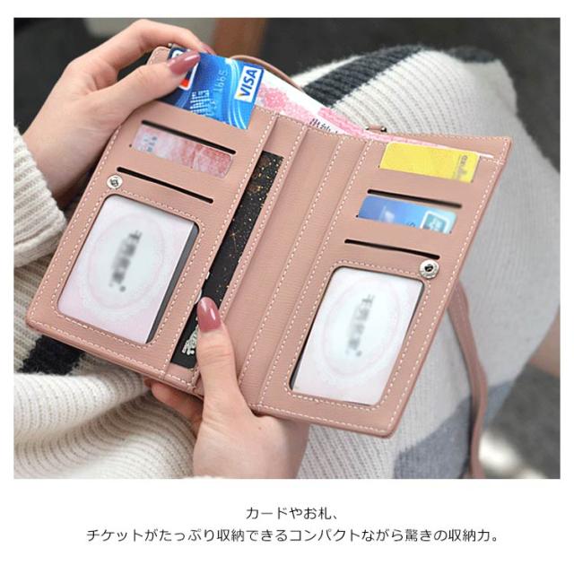 スマホ.お札・小銭収納!長財布 レディース スマホポーチ スマホポシェット ショルダーバッグ ミニバッグ バッグ お財布 小さめ かわいい 小物収納 ファッション 雑貨 PU 合皮
