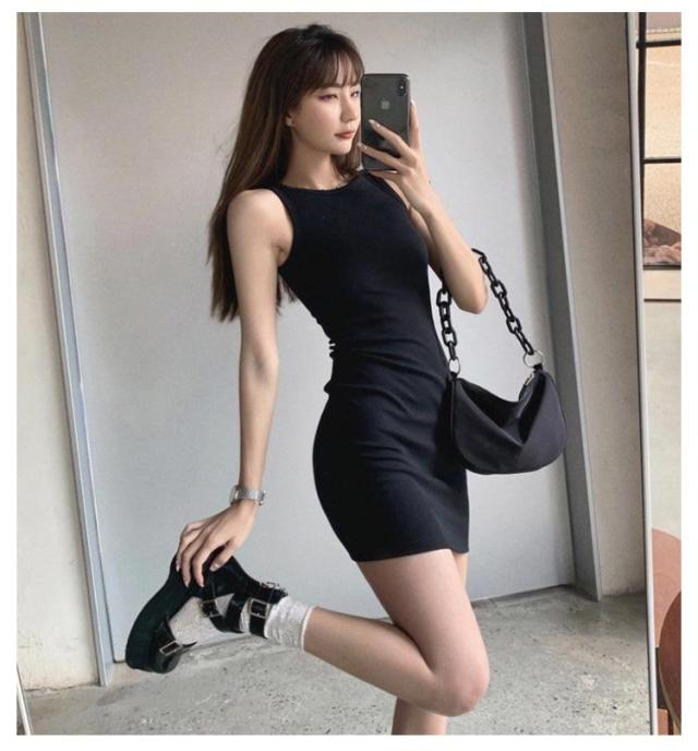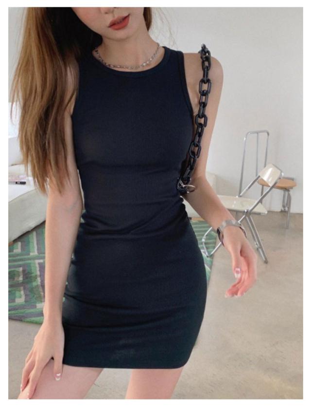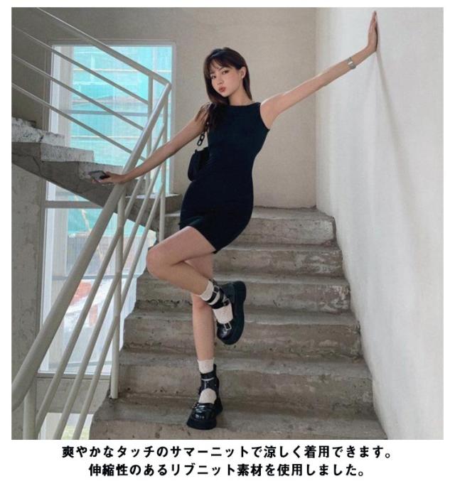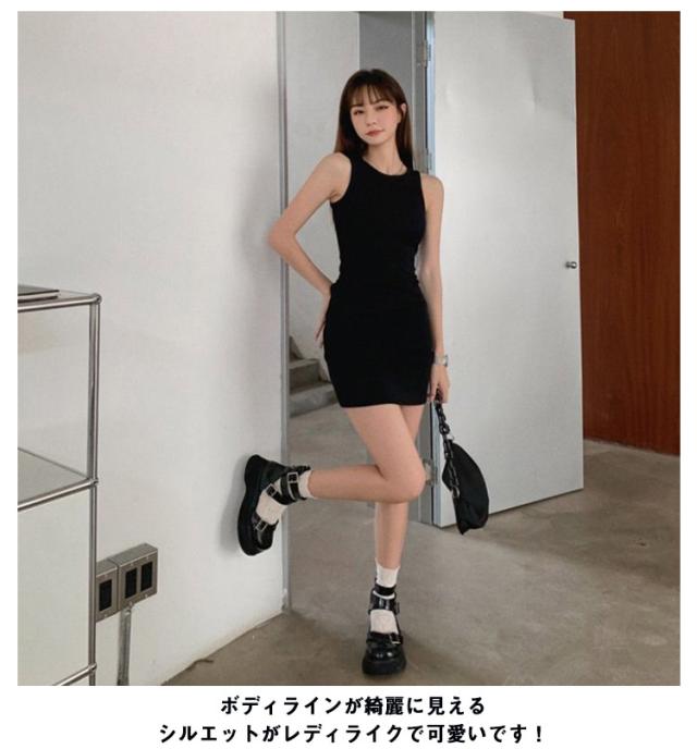 ミニワンピース 細身 タイト ミニワンピース 大人可愛い ノースリーブ ミニワンピ ニット キャミソールタイトワンピ シンプル タンクトップタイトワンピ ストレンチ セクシー 韓国 ブラック 黒 【送料無料】ワンピース