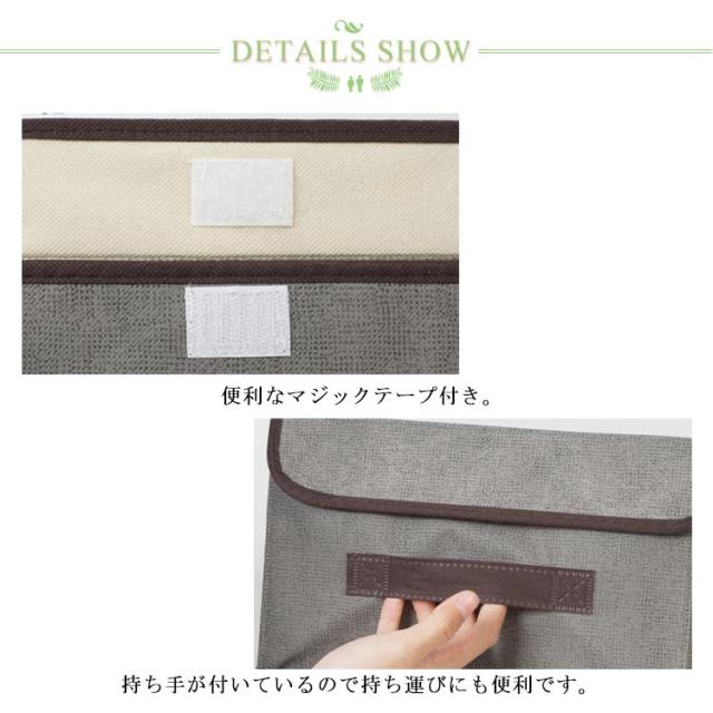 | 高品質な不織布を採用し、手触りも良い。 便利なマジックテープ付き。 持ち手が付いているので持ち運びにも便利です。 | |