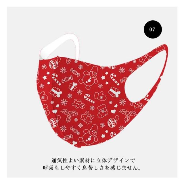| 可愛いクリスマス柄のおしゃれマスク♪ 仮装パーティーやコスプレイベント等にご活用いただけるファッションマスク。 通気性よい素材に立体デザインで呼吸もしやすく息苦しさを感じません。 | |