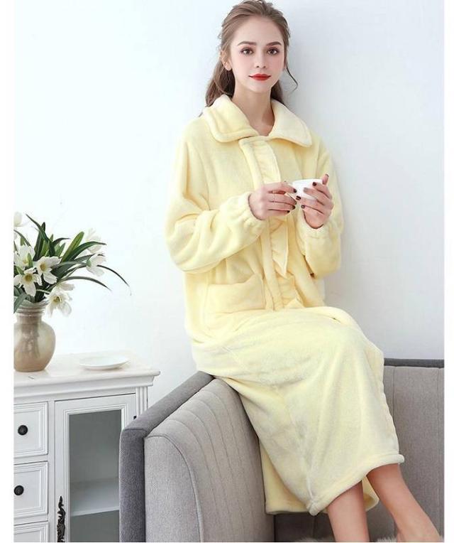 フリルパジャマ レディース 秋冬 パジャマ 寝巻き かわいい 女性パジャマ ルームウェア モコモコ パジャマ ワンピース 折襟 ナイトウェア 部屋着 ふわふわ 可愛い 暖か 無地 シンプル カジュアル おしゃれ 送料無料
