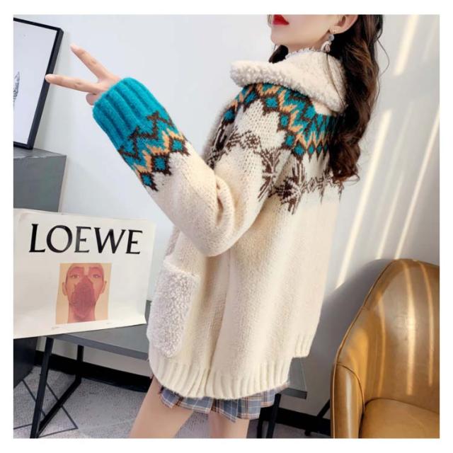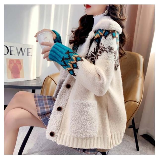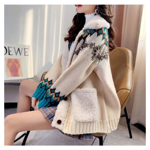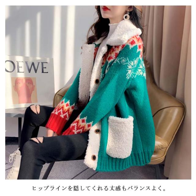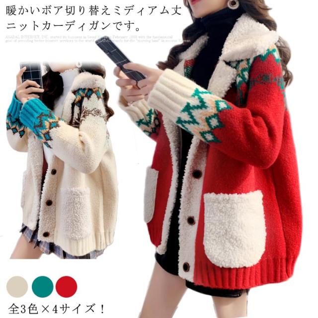 全3色*4サイズ!ボア切り替えカーディガン レディース カーディガン ニットカーディガン 秋冬 秋 冬 ニットコート 厚手 ボア 暖かい ポケット付き ゆったり 可愛い