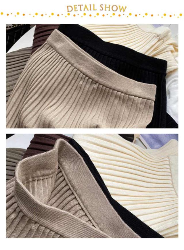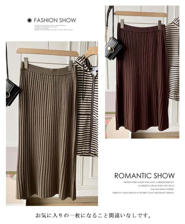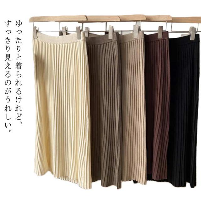 送料無料 ニットスカート プリーツカート ロングスカート aラインスカート ロングたけ シンプル リブスカート ウエストゴム 無地 カジュアル 送料無料