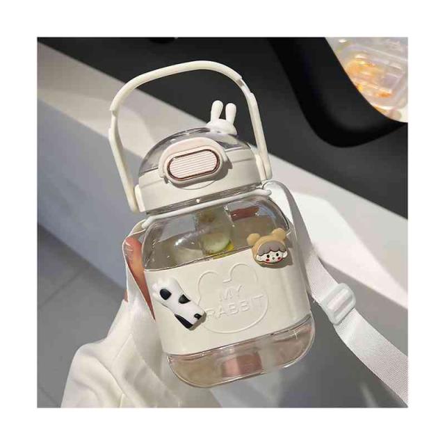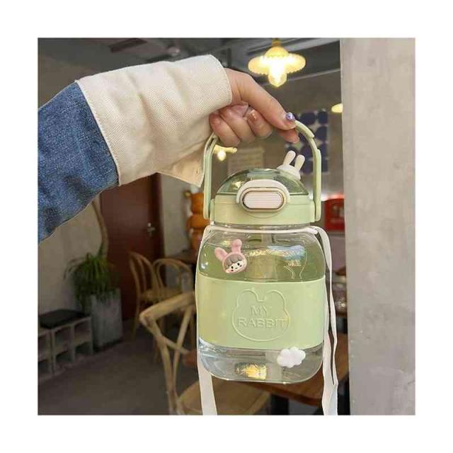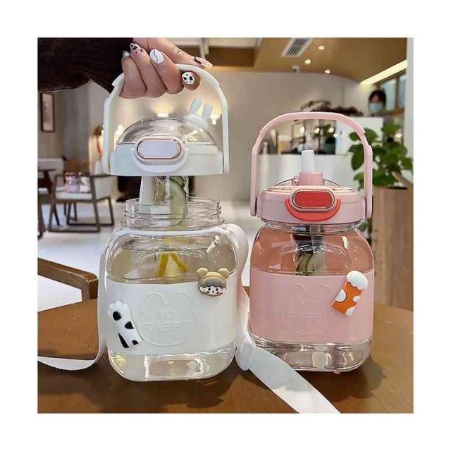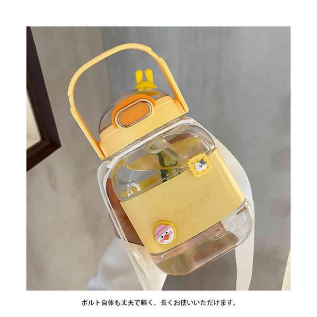 大容量 1400ml ストラップ付き 水筒 ストロー ボトル ウォーターボトル 直飲み 子供 大人兼用 キッズ 子ども こども ワンタッチ かわいい 首掛け ロック付き 持ち運び 軽い 漏れない スポーツボトル ドリンクボトル 通学 通勤 自転車 アウトドア