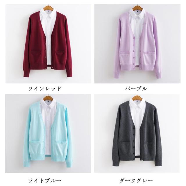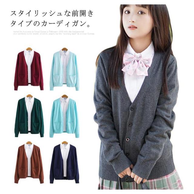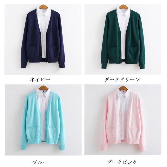 スクールカーディガン レディース カーディガン Vネック 女子高生 セーラー服 制服 学生服 ニットセーター 前開き 春 夏 秋 冬 ニットカーディガン 森ガール セーターコーディガン 薄手 9本針 羽織り アウター