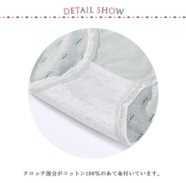 | 4枚セット!優しい履き心地可愛い柄のレディースショーツ。 肌さわり優しい綿素材を採用、通気性が良く快適な着心地。 フロントは小さいリボン付き、可愛らしさを演出。 腰回りと裾口周り細いレース付いてあり、女性の甘さを演出。 クロッチ部分がコットン100%のあて布付いています。 快適な履き心地柔らかいショーツは普段使いやプレゼントにもぴったり。 | |