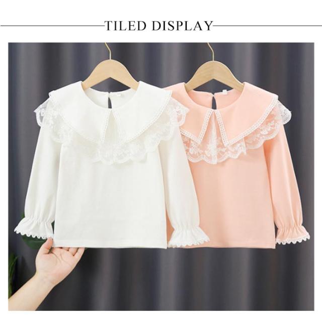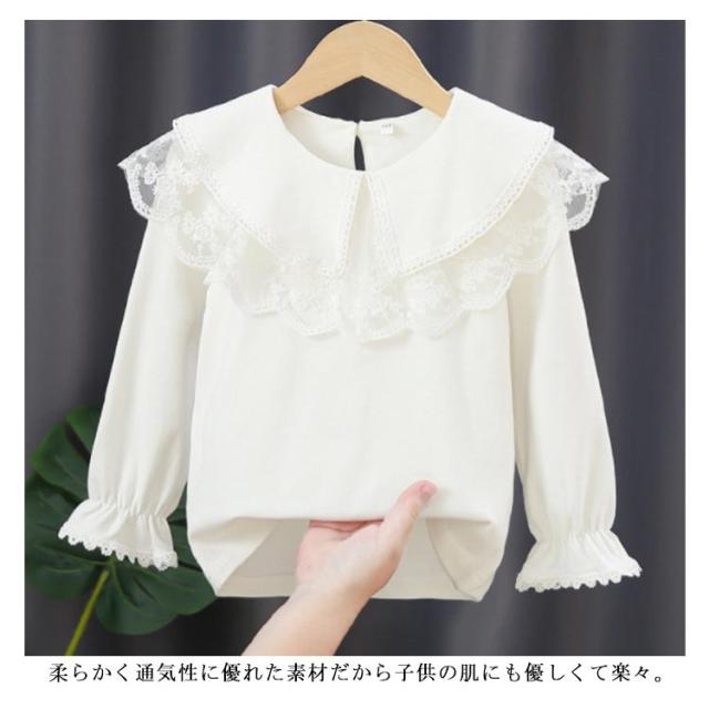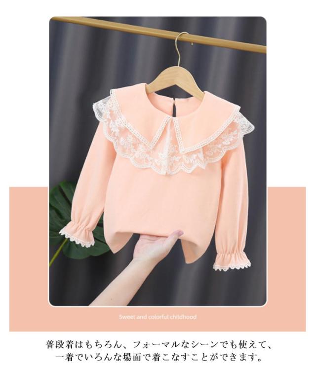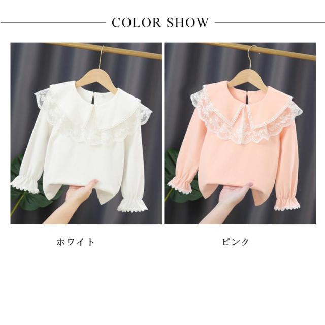 レースtシャツ 女の子 キッズ tシャツ カットソー 送料無料 綿 長袖tシャツ レース ブラウス ビッグ襟 セーラーカラー セーラー服 トップス 春 秋 バックボタン かわいい 白 ピンク 子ども ガールズ 通学 通園 フォーマル 110 120 130 140 150 160cm