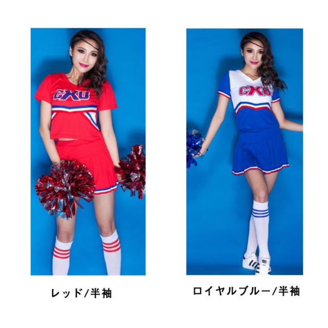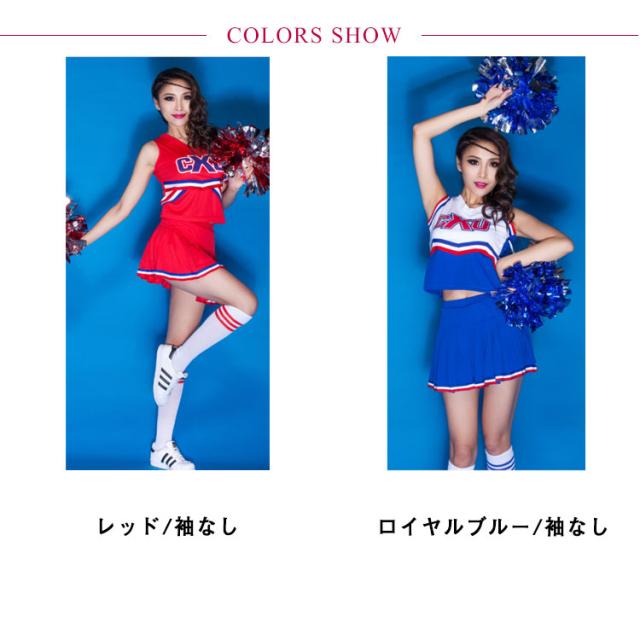 チア 制服 コスチューム スポーツ 応援 上下セット チアガール 袖なし 半袖 プリーツスカート 選べる2タイプ 選べる6サイズ スクールガール 女子高生 女子大生 応援団 ハロウィン コスプレ かわいい 男ウケ 衣装 仮装 ユニフォーム ダンス ステージ イベント 全2色