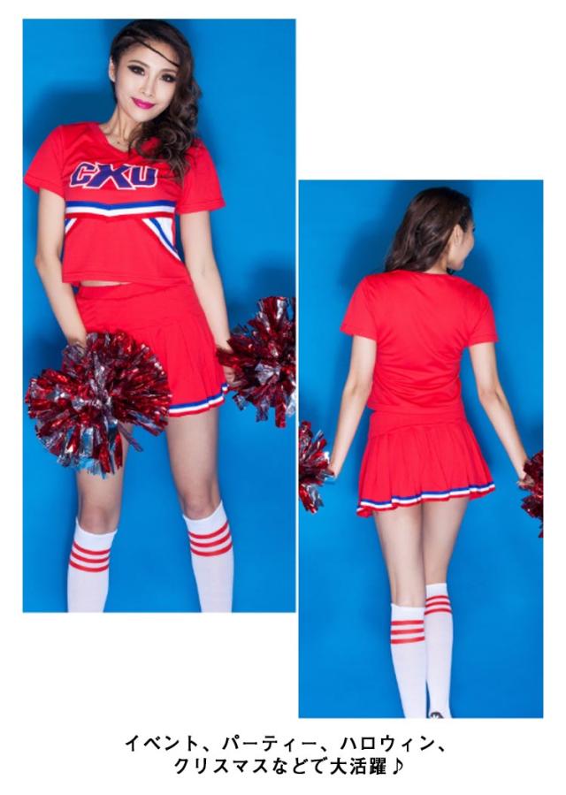 | 元気可愛い!チアガールコス! セット内容:トップス+スカート。 ノースリーブのトップスとプリーツスカートの組み合わせがよりリアル感を出しています。 グループで着ても、個人で着ても盛り上がるコスチュームです。 イベント、パーティー、ハロウィン、クリスマスなどで大活躍♪ | |