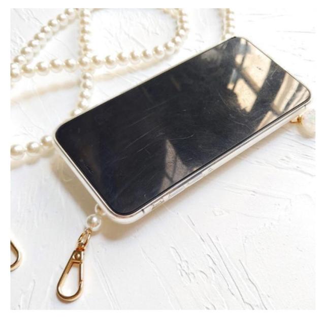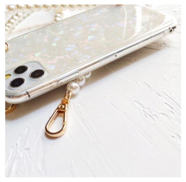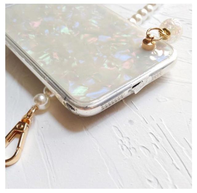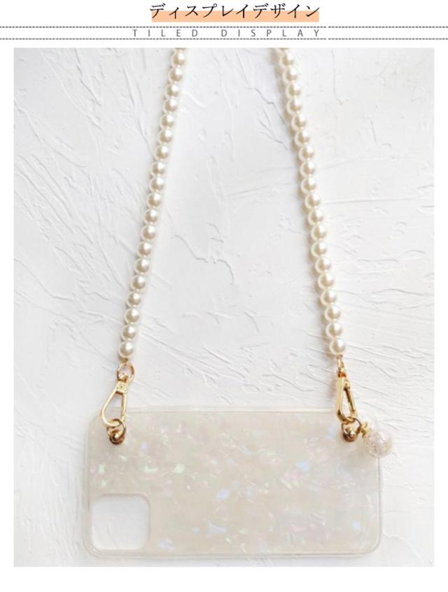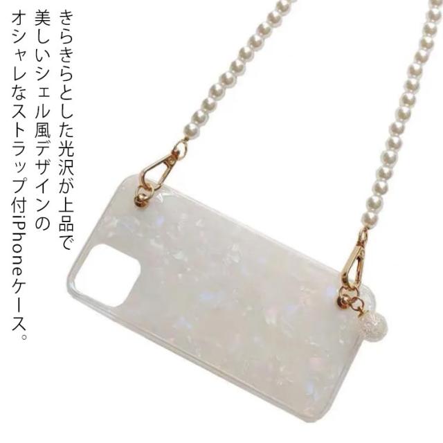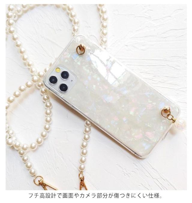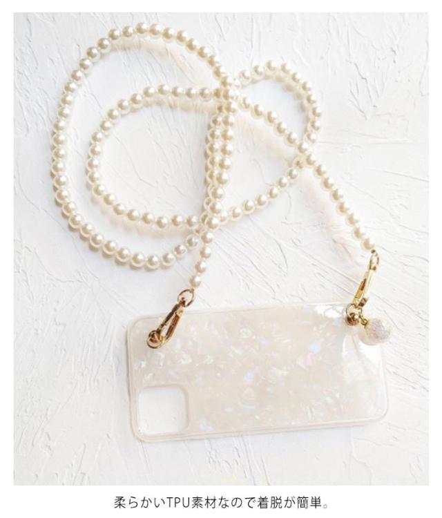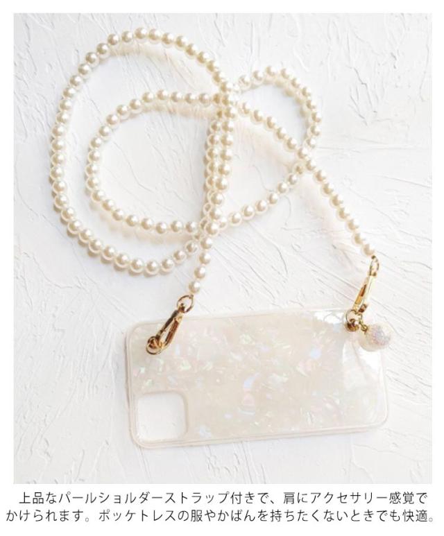 iPhone 13 ケース スマホショルダー ショルダーストラップ パールストラップ iPhone 13pro 13promax 13mini iphone12 11 SE 7 8ケース 首掛け 斜めがけ きらきら 光沢 シェル風 アイフォン ケース シリコンケース iphoneカバー おしゃれ かわいい プレゼント 送料無料