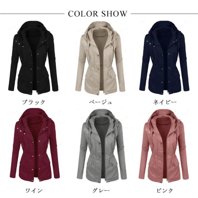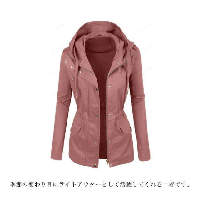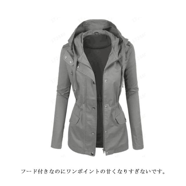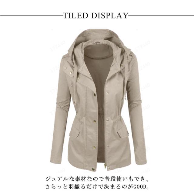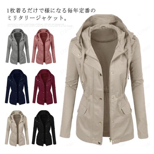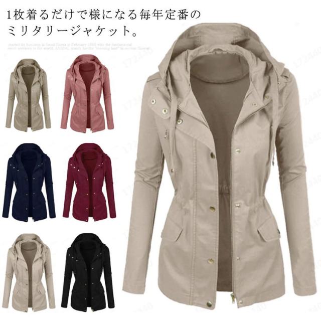 送料無料 ミリタリー フード付き アウター レディース ライトアウター 大きいサイズ ジャケット 春秋服 カジュアル 着痩せ 無地