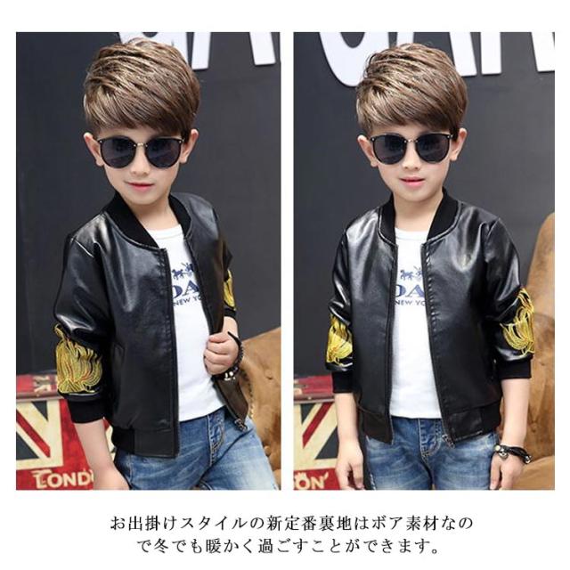 子供服 ライダースジャケット レザージャケット 革ジャン ブルゾン 男の子 暖か 裏ボア キッズ コート おしゃれ 冬服 ブルゾン アウター かっこいい 新作 110 120 130 140 150 160