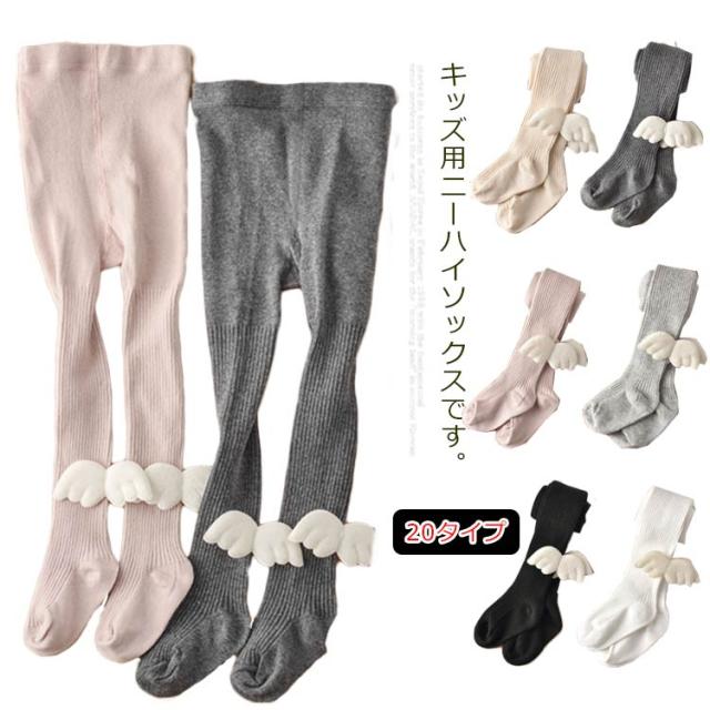 子供ソックス ニーハイソックス オーバーニーソックス シンプル 天使の翼飾り 女の子 無地 キッズ かわいい 舞台 演出 七三五 新作