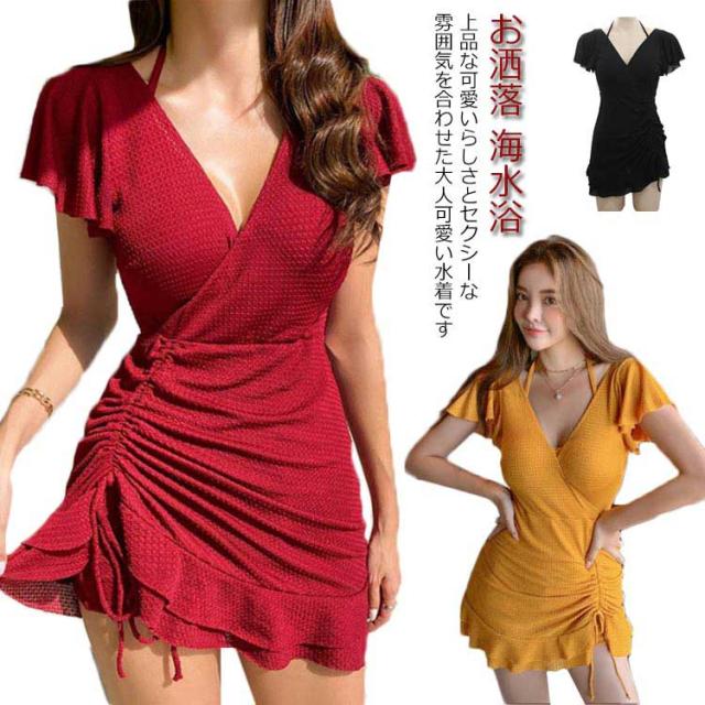 水着 ワンピース レディース 体型カバー 大きいサイズ ぽっちゃり ママ水着 20代 30代 40代 オトナ女子 フリル フレアスカート 可愛い お洒落 お腹 お尻 太もも カバーアップ 露出控えめ ノンワイヤー 黒 ワイン 温泉 プール 海水浴 ビーチ 送料無料