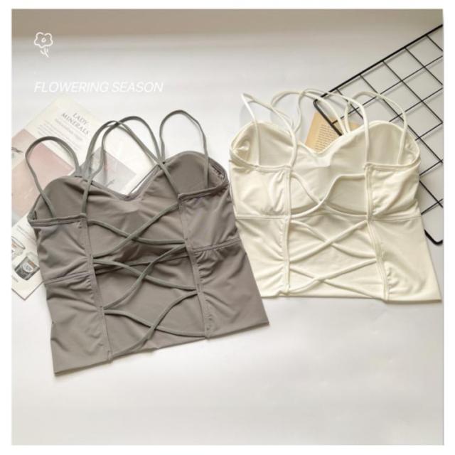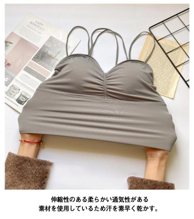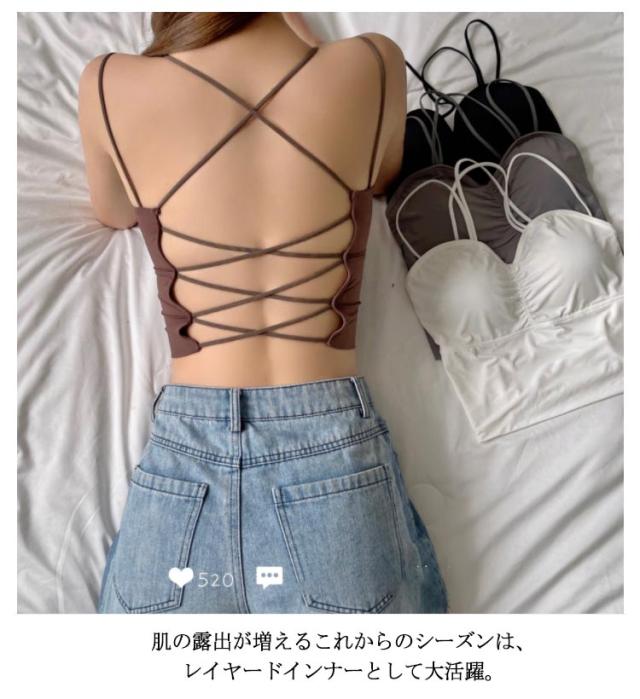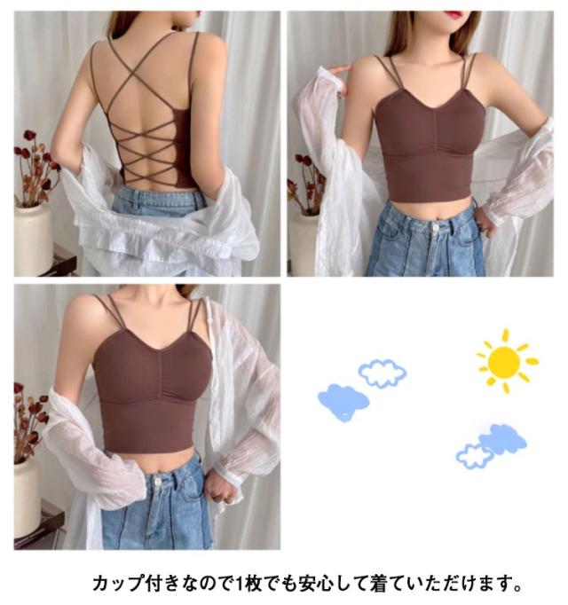 春夏 接触冷感 背中見せ ブラ キャミソール カップ付き 下着 ブラジャー レディース インナー 見せブラ ノンワイヤー ヨガブラ ブラトップ バッククロス バックオープン ストレッチ 背中クロスブラ キャミ 送料無料